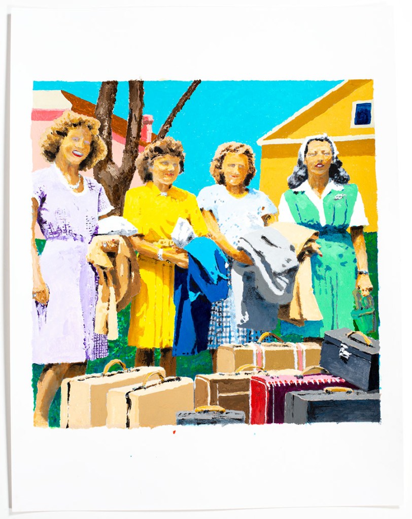 While creating this painting I was working on the idea of fading memories, thus the details of my mom’s features, as well as those of her sister and two friends, were not rendered in ‘realistic’ detail. When I painted this, I was also realizing that since her passing, the many detailed experiences of my life with her were also fading and that there are still moments that a past experience is crystal clear, those moments are becoming fewer and fewer. Time is a memory bandit, which is one of those good news, bad news aspects of our life. Thus, photographs can become precious talismans as these prompt memories of pass events that we wish to continue to treasure.
