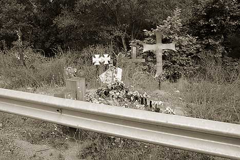 …Last week was an interesting series of events when I became aware of two new road side memorials. I posted about one yesterday, and I found my self working on the new stuff again, so I am able to discuss this image. Yesterday, I started a dialog about how I choose one image over another. I find that with digital, I am shooting more alternatives for a given image.