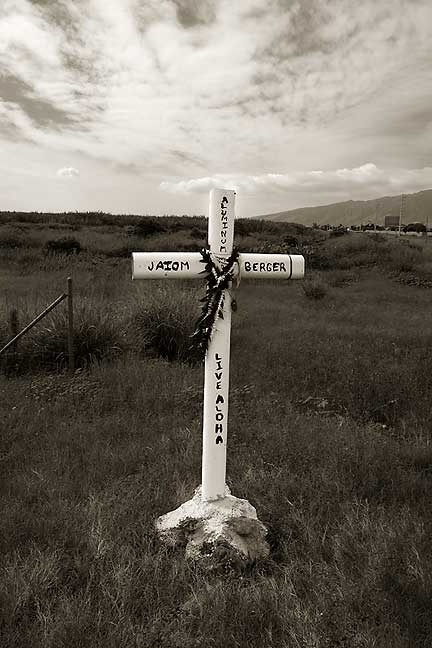 After making these photographs, a couple stopped their truck next to where I was disassembling my photographic gear and were friends of Jaiom Berger, the Alumnium Man, as he was known on the island. Apparently Jaiom was riding back to his house on his moped and was run-over by a DUI driver and killed in 1998. And the DUI driver already had his license revoked becasue of the two previous DUI events, and is now in prison for man-slaughter. I just find this to be very troubling, but from this event his friends have gone on to created the Aluminum Man events on Maui.
