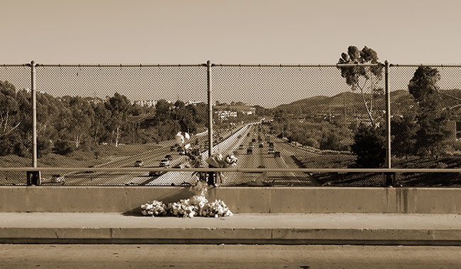 Three Bouquets on Freeway Overpass (from the series: Bad Trip – Sad Trip)