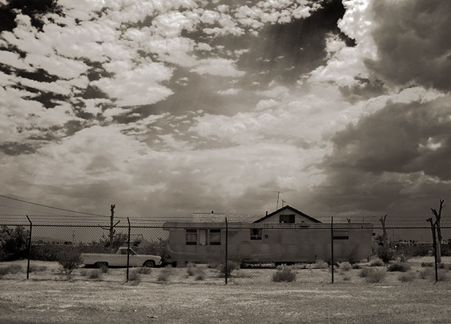 While driving about in the Las Vegas suburbs and neighborhoods, you see a lot of changes. Tearing down the 1940 – 50 – 60’s desert houses and being replaced by the track housing developments. Occasionally you still find the funky old desert house, but not as often. This house was actually ringed by a fence and looking very abondoned. What was also interesting was the old single-wide mobile home adjacent to the house. As to that wonderful sky, that was due to the summer monsoon storms that come up from Mexico and the Gulf. Las Vegas located out in the desert gets more rain at times than Southern California.