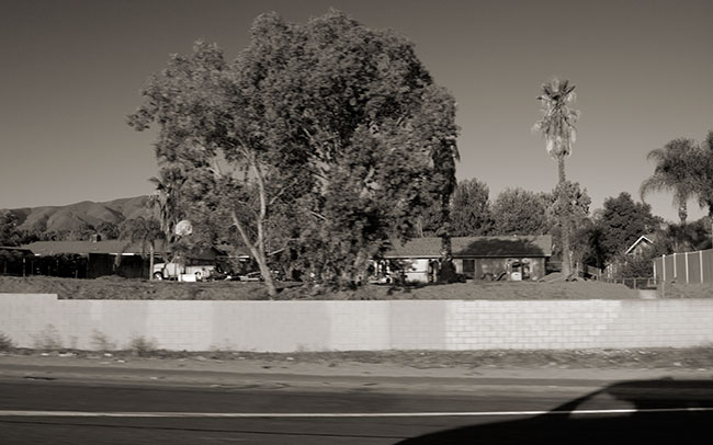 This is a backyard that I have been watching for the for the last couple of months as I drive this section of the I-15 freeway. Not a lot has happen here, maybe the 1950’s Ford pick up has moved a tad bit. Still your basic dirt yard landscaping. Another difference with the Coastal Freeway, if a brick wall is to provide some visual/noise seperation between the adjacent houses and the freeway, it would actually block the view of the freeway. As you can see, that is not a requirement for the Inland Empire. Actually I am not sure what this block wall is providing. The freeway noise must be really loud, which is probably why I have seen anyone actually in this back yard.