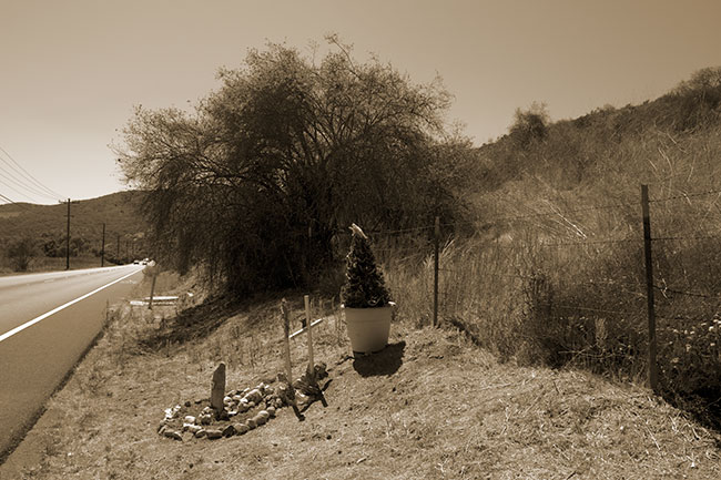 I have been working on my series Bad Trip – Sad Trip for over almost two years and as recently as today’s image, which I guess qualifies it as a Photo of the Day. In one sense, I felt that I have created a sufficient amount of images to effectively get my thoughts across about my meaning of these Folk Art Memorials. But from my reaction to another road side memorial, perhaps not.