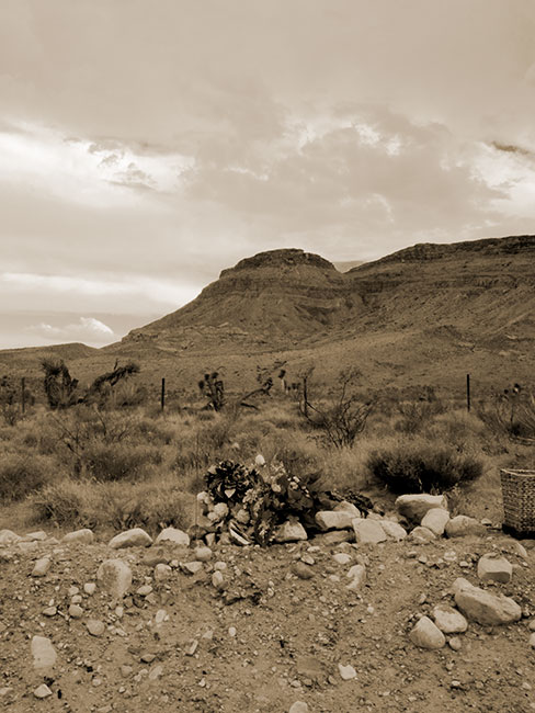 This image Rocks and Plastic Flowers has been lingering in my series Bad Trip – Sad Trip portfolio and I was not sure of my hesitancy. The rocks and plastic flowers were where I wanted them placed relative to the middle ground desert and the background mountain and clouds. But something was not right with the image I created, so I let this image remain somewhat dormant as I worked on other images for this series. Trouble was, most of the other images were coming together and this one was still not.