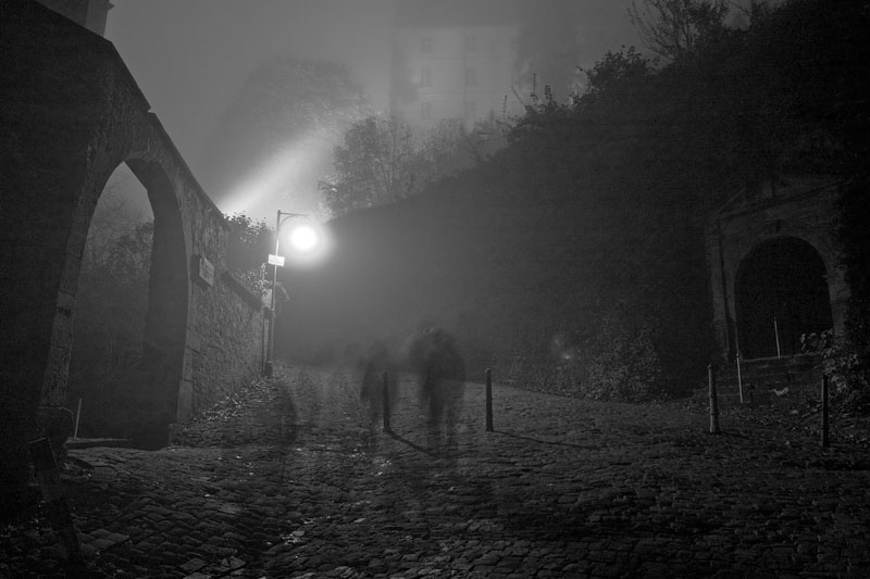 I was now at the base of the Marburg castle.  And it was getting really dark and really foggy. And there was absolutely no one around.  I was still ‘focused’ on making my images when I then heard a different sound. I guess that is when I noticed the hair on the back of my neck kinda standing on end.  And the air started to really get chilly. Huh? I now started to remember some stories about this castle. And it was too late, cuz I was where I should not have been.