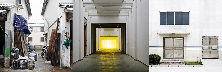But I was not sure which of the three images that compose this this triptych was the problem. So I started moving all the triptych’s around looking at the groupings, in this case the Hutong and Industrial groups. When I put these in proximity, two pairings jumped out at me. Both had something wrong, but in the same place. Thus it became a case of mechanical switching one image from each triptych to give both the emotional content I had found lacking.