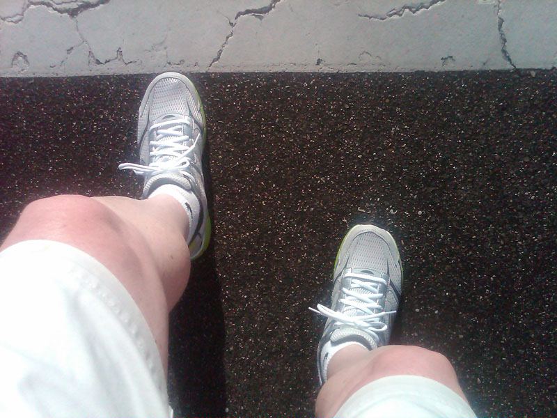 So after brunch today (and now regretting those nice and fluffy stack of pancakes) I bought a new pair of running shoes, as my “walking” shoes are not going to cut it. Which is okay, as they were showing some pretty bad wear. And determined that today would also be my first training day. No planning or preparation, just cold turkey start it.