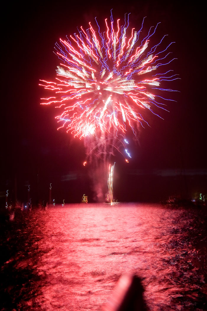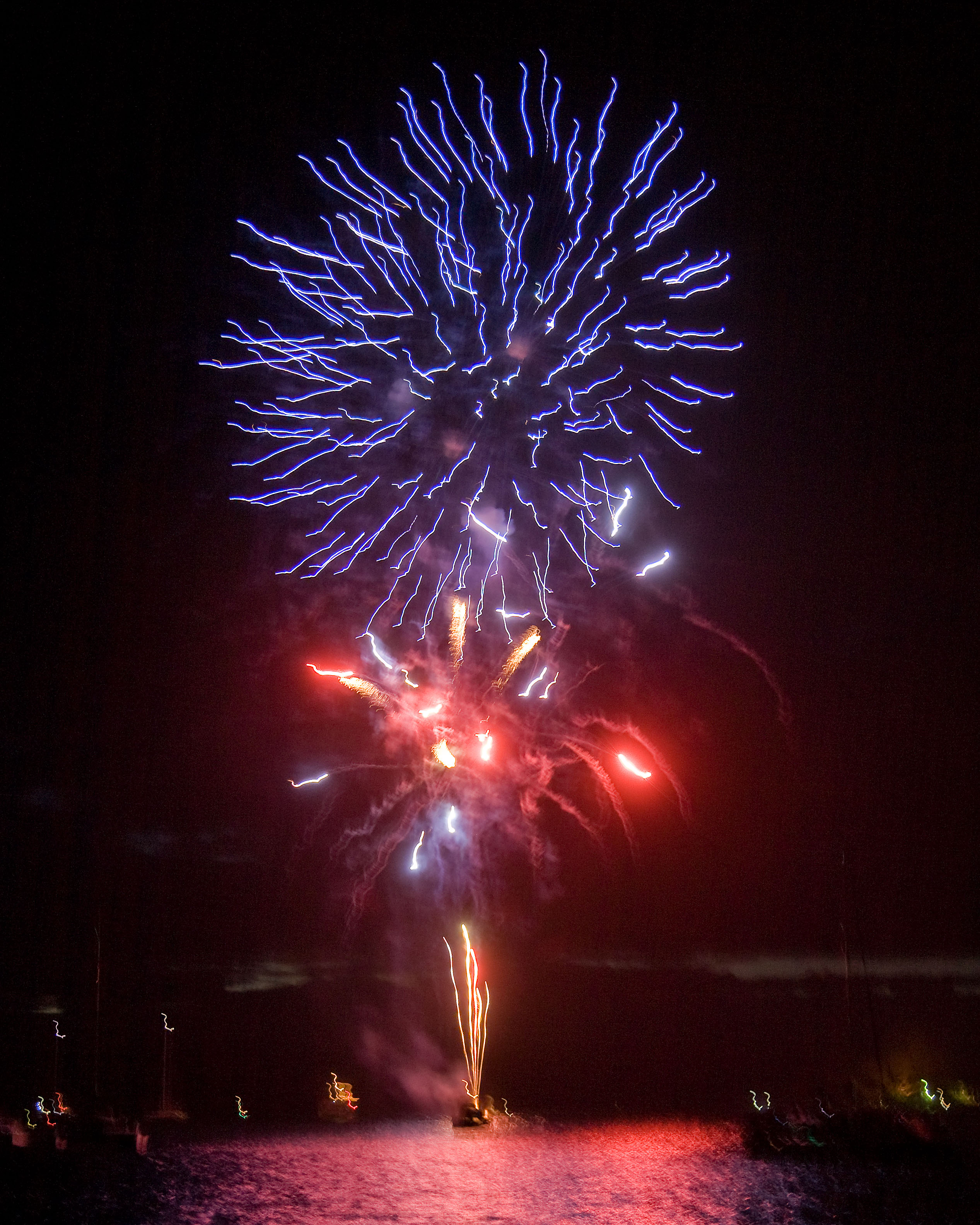 While we were vacationing in Maui, we planned to do a catamaran boat ride on the 4th of July, which after dinner, we were to moor off shore from Lahaina for the fireworks. What I did not expect is that we would end up with a very clear and unobstructed view of the fireworks exhibit. What I find fascinating about photographing a fireworks display is the unexpected serendipity of the results and the potential for some interesting abstract photographs about light & color. Unless you provide a reference point, the subjects are ambiguous as to the relative size. Typically, one would use a tripod for a Bulb exposure, so taking these photographs on a swaying boat out in the ocean was going to introduce another unmanageable element into the photographs.