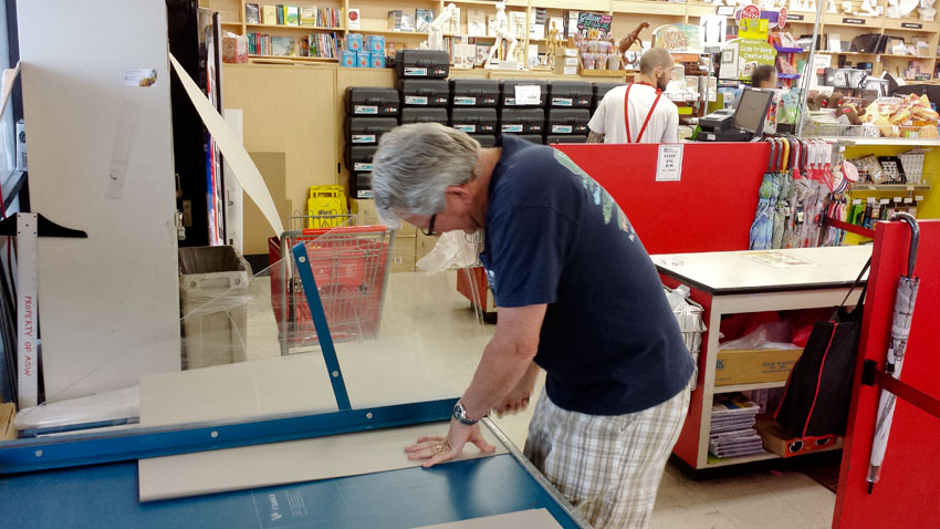 For the last couple of days, I have been in the fabrication mode for Pine Lake, my artist book. One of the limitations to constructing this artist book was the 24″ paper cutter in my studio. Thus after I purchased the 32″ x 40″ Crescent 20C chipboard for the backing on my custom wood frames, I took full advantage of the huge cutter at the art store to make blanks small enough for my paper cutter to trim to size.