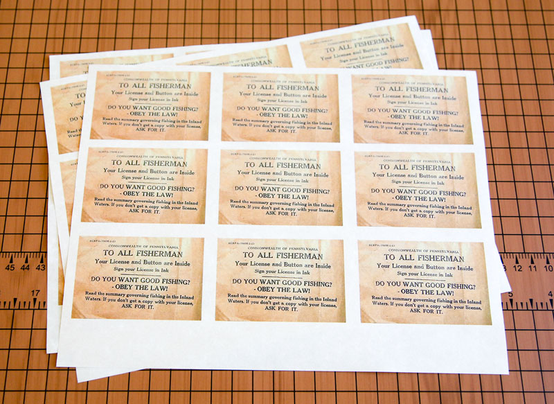 While I was looking for fishing license and other fishing ephemera for my Pine Lake artist book as I was discussing yesterday with the Michigan fishing stamp, I kept having this particular Pennsylvania fishing notice, above, pop-up in my searches. hmmm, besides being very humorous, I was starting to guess that there must be a reason that this would keep appearing.