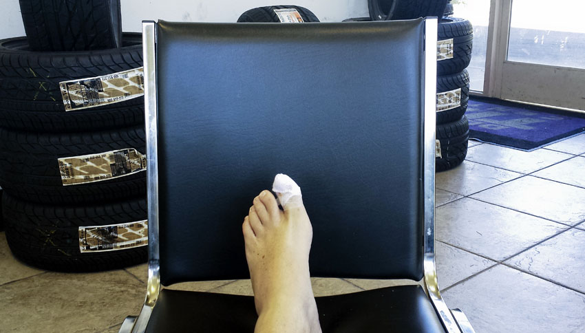 Which leads to the Misadventures of Mr. Bum-toe. For at least the next two of weeks I need to soak and dress my surgical “wound” three or more times per day. And keep off my feet for the next couple of days, with my bum toe up. And since I could not work on Pine Lake for the next couple of days, what could I do? I made a brilliant observation (fancy name for a brain-fart) that now everywhere I go, Mr. Bum-toe is there tooo.