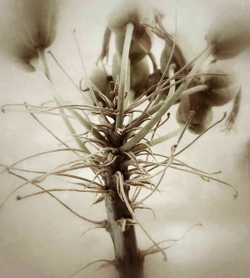 While developing this photograph for my Memory pods series, I kept finding myself introducing a warm hue. Up to this point I have been exploring variations of a neutral or tan background color. Color can convey a whole litany of narratives; such that a warm red can convey warmth & heat as well as either anger or passion. Perhaps this is a surrealist attempt to add subjectivity to the image?