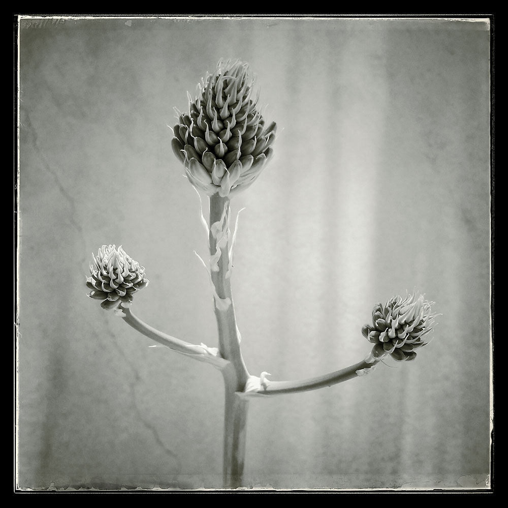 Earlier this week I posted this same image, but a version with a very distinct blue hue. After having this matted blue version on my work bench for a while, it dawned on me that this was a nice Singular Image, but it would not eventually become part of my Memory Pods project. That said, I still might change my mind, again! I guess that a blue version might carry some metaphoric connotations of actually feeling “blue” or depressed, which is not what I am thinking. A budding flower is about expectations and hope. For me, this phase of the Memory Pods is when the memory is being formed.