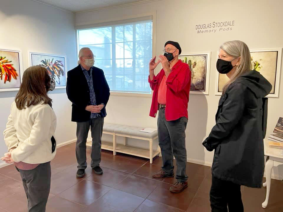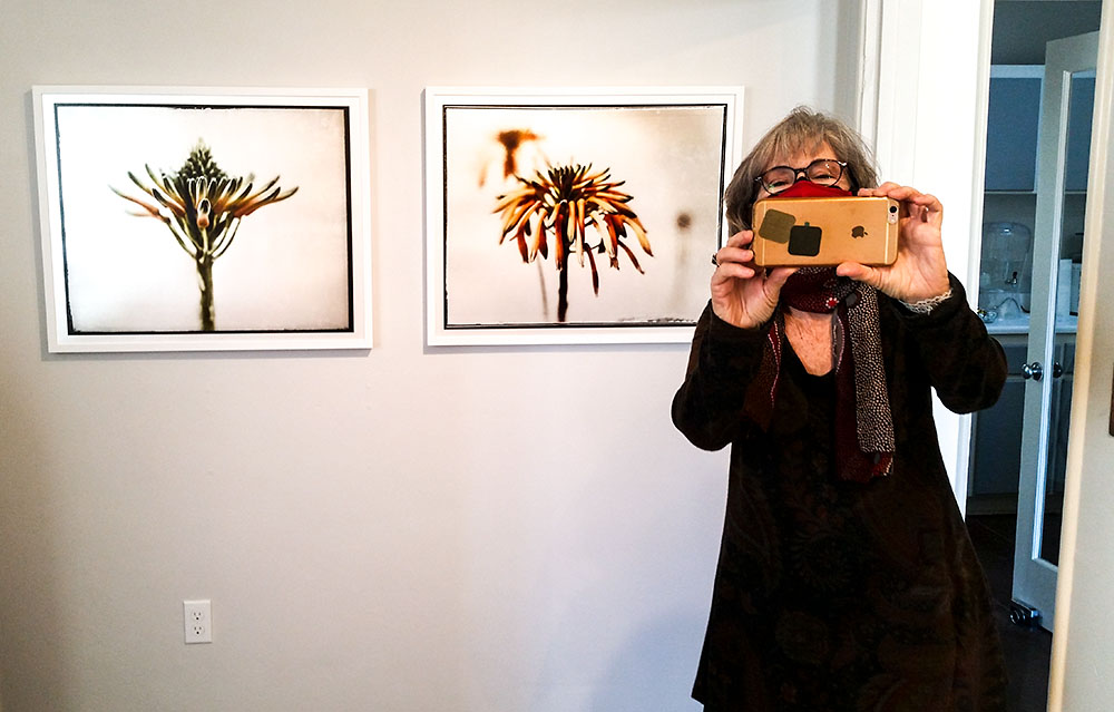 Donna Cosentino made some fun photographs during the artist reception last Saturday, February 20th (2021) while Louise and I did a photo-dual (Apple versus Samsung), below. Donna and her gallery team provided a wonderful reception considering the pandemic induced limited conditions, masks, social distancing and all. I hope you can tell with all of the smiling under the masks that we had a great event.