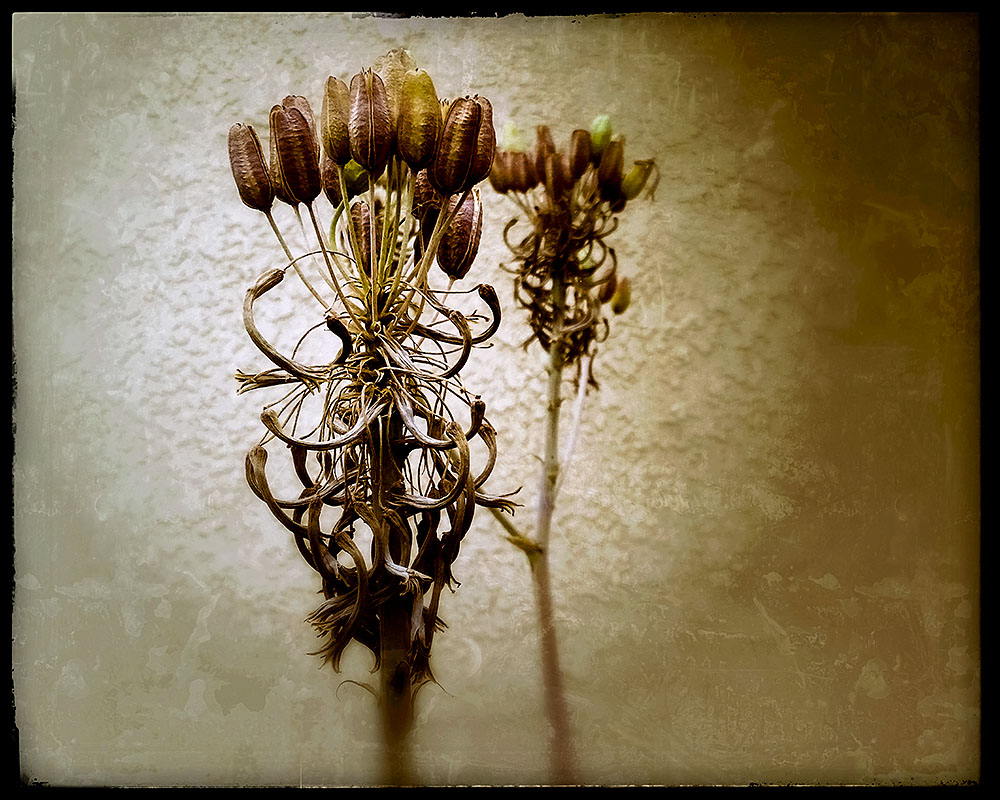 Another down side; my Ala Vera plant that I photograph for my Memory Pods series has finished going to seed, the seed pods are dead and dried and all but one stalk have been trimmed down. So to experiment/play on the Memory Pods series will be extremely limited with the new phone camera. Which maybe a good thing…keep my options to a minimum so that I might actually remember what I did to obtain the effects that resulted. duh.