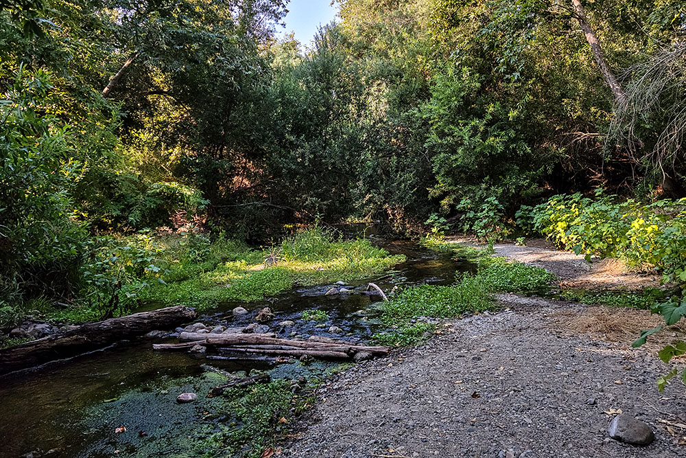Over the last fifteen years, I really cannot recall when there was not some kind of water running in the creek, so I was not disappointed. During the summer months though, the water flow is a bit lazy, with more green growing on the edges.