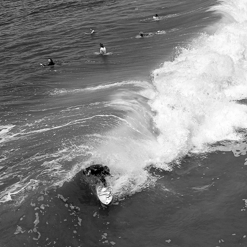 I had a wonderful advantage point up on the pier overlooking this popular surf spot. Typically the surf break is an inside set so I did not have to venture out far on the pier. Also the break is towards the pier, so surfers have a tendency to make a cut towards where I was situated, providing me with opportunities similar to the ‘tube rider’ above.