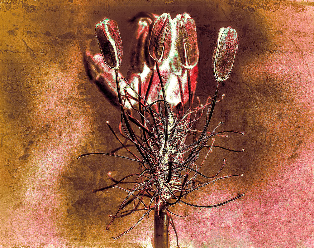 When I invert my images, I am never sure exactly what the results will be. I am also finding that element of serendipity to be playful while working on these. Such as the swirling background pattern that resulted in the image above, as though my central subject has been caught up in a storm. We have seen more than enough storm damage in central United States due to some horrific tornadoes which are rare for this time of year as well as overly powerful. Unusually warm air rising from the south that runs into a cold front coming from the west, creating powerful wind shear and the resulting tornadoes. Effects of climate change and regretfully, we will be experiencing more of this, which could potentially become even worse.