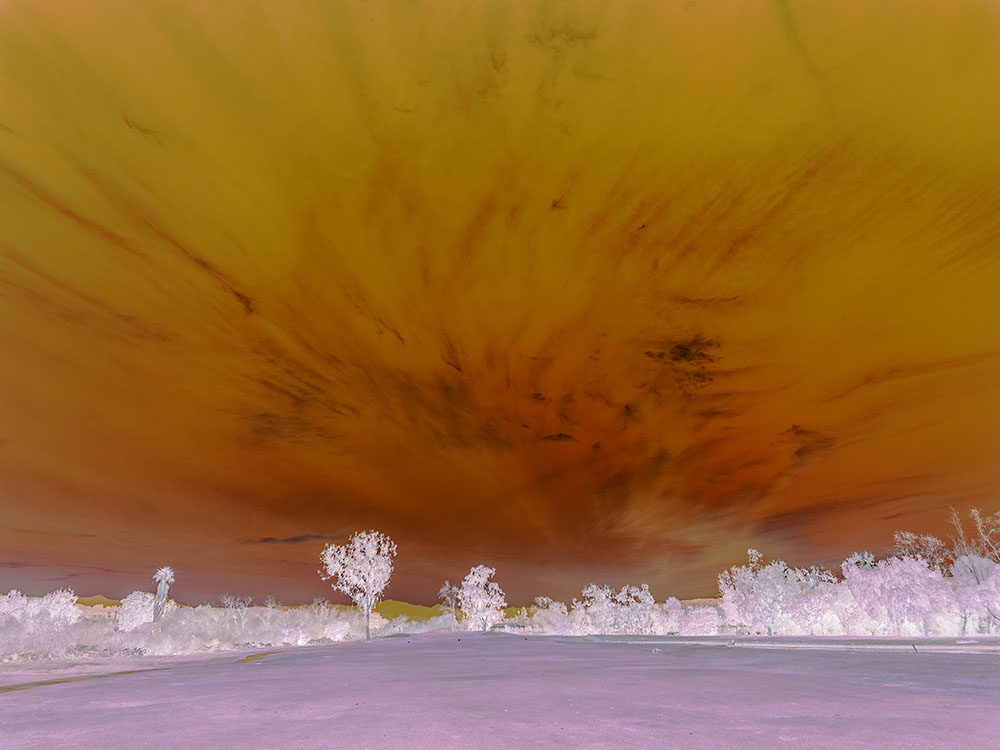 These are two versions of a recent urban landscape that I photographed some moments apart taking note of the developing cloud cover, which I thought was very intriguing in the way the clouds appeared to radiate outward from the horizon. Thus this pair of images was nicely pre-visualized. I processed these slightly different to evaluate different alternatives, one darker and the other with a slightly higher key-light as well as with a little more graphic impact (my show stopper). My image evaluations includes printing these as I am finding that the two-dimensional flatness of a print slightly changes the visual impact when viewing the image compared to a backlit flatscreen monitor. As a result of the printing, I flipped the two images in this article, with the image I had initially thought would be my lead-in is now situated below.