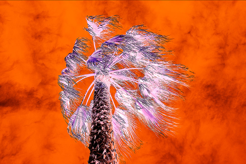 One of the consistent comments about Burning Palm is that this photograph reminded almost everyone of the devastating wildfires that have been ravaging the country, especially western United States, for the past few years. They remarked that this photograph’s image was very similar to what they saw extensively covered on t.v. during those wildfires. While this photograph was not made during the 2020 wildfires in the adjacent mountains, there were a couple of days that the sky above the palm tree in my back yard appeared very similar. Probably that graphic memory inspired this composition.