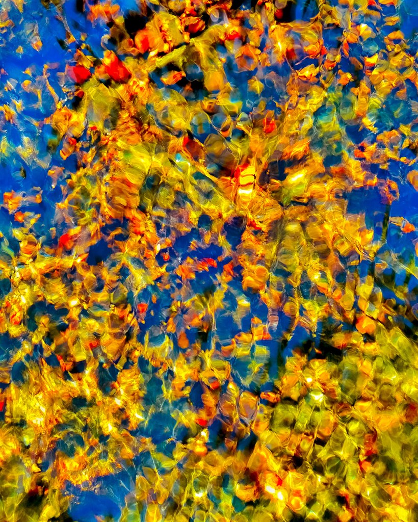 Picasso’s Guernica painting utilized representative symbols, such as the bull and horse, while I find myself leaning into contemporary abstraction of colors and mass to portray what I sense. This image has its roots utilizing my earlier investigation of caustic networks and quantum mechanics, an unseen and subliminal energy source. I wanted to create a strong undercurrent of tension in the blurring of the edges of the various shapes as they mash together. It need to have a chaotic energy utilizing the colors of Ukraine as though being needlessly attacked while creating a strong defense response. I want to incorporate reddish areas in this ambiguous image that could represent many aspects of this conflict, from the spilled blood of the Ukrainian martyrs to a symbolic of the presence of an unwanted foreign army that is ensnared in its borders.