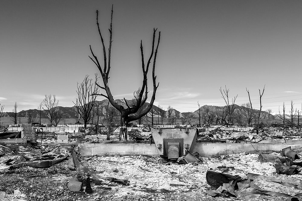One alternative to what I discussed yesterday that I might consider with the photographs I made in the aftermath of Colorado’s Marshall Fire is to create black and white conversions. These images, like the one above, would result in a very subtle graphic ‘abstraction’ of the actual chaos resulting from this Climate Change event.