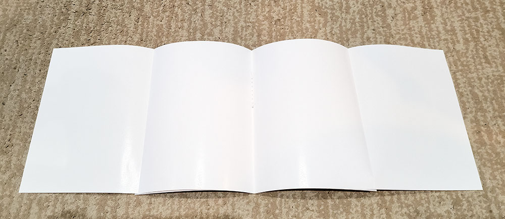 To my surprise there were 10 each 4-page spreads in addition to the 8-page interior double-gate fold included in the mock-up, when I was only expecting 8 each 4-page spreads. The mock-up I received was for 48 pages, not 40 pages. Huh?
