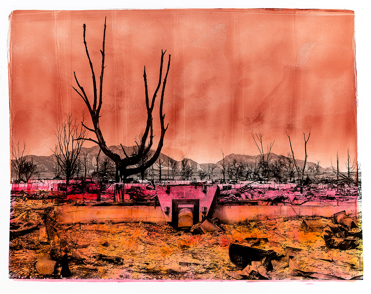 There were two firestorm aftermaths that I had documented, Marshall Fire in Boulder, CO and Airport Fire in El Cariso Vally, Riverside, CA and provided the foundation of my subsequent artwork. The features images are provided below.